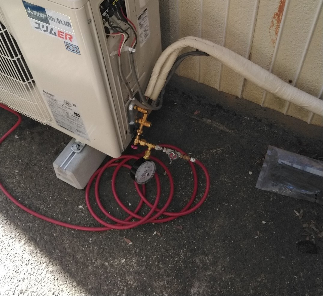 新規室外機 耐圧テスト ガス漏れ確認中